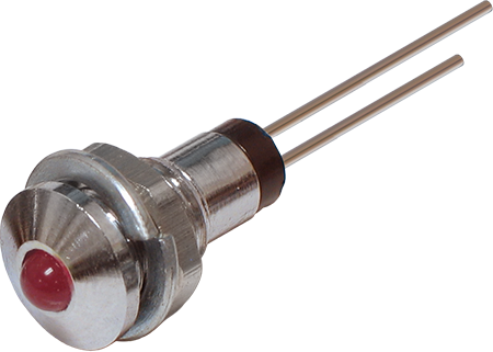 | Web Description | Panel Mount LED Indicator, 3mm Dome Diffused, Conical, 1/4" Mtg.Dia, Lead Terminal, 0.65"Lx0.315"D, Ultra Red, 12/14Vdc | ||