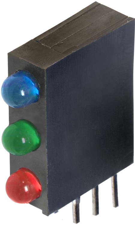 | Web Description | PC Board LED, 3mm Lo-Dome Diffused, Right Angle 3x1 TriLevel, 0.170"Wx0.600"Hx0.555"L, G/Y/UB |